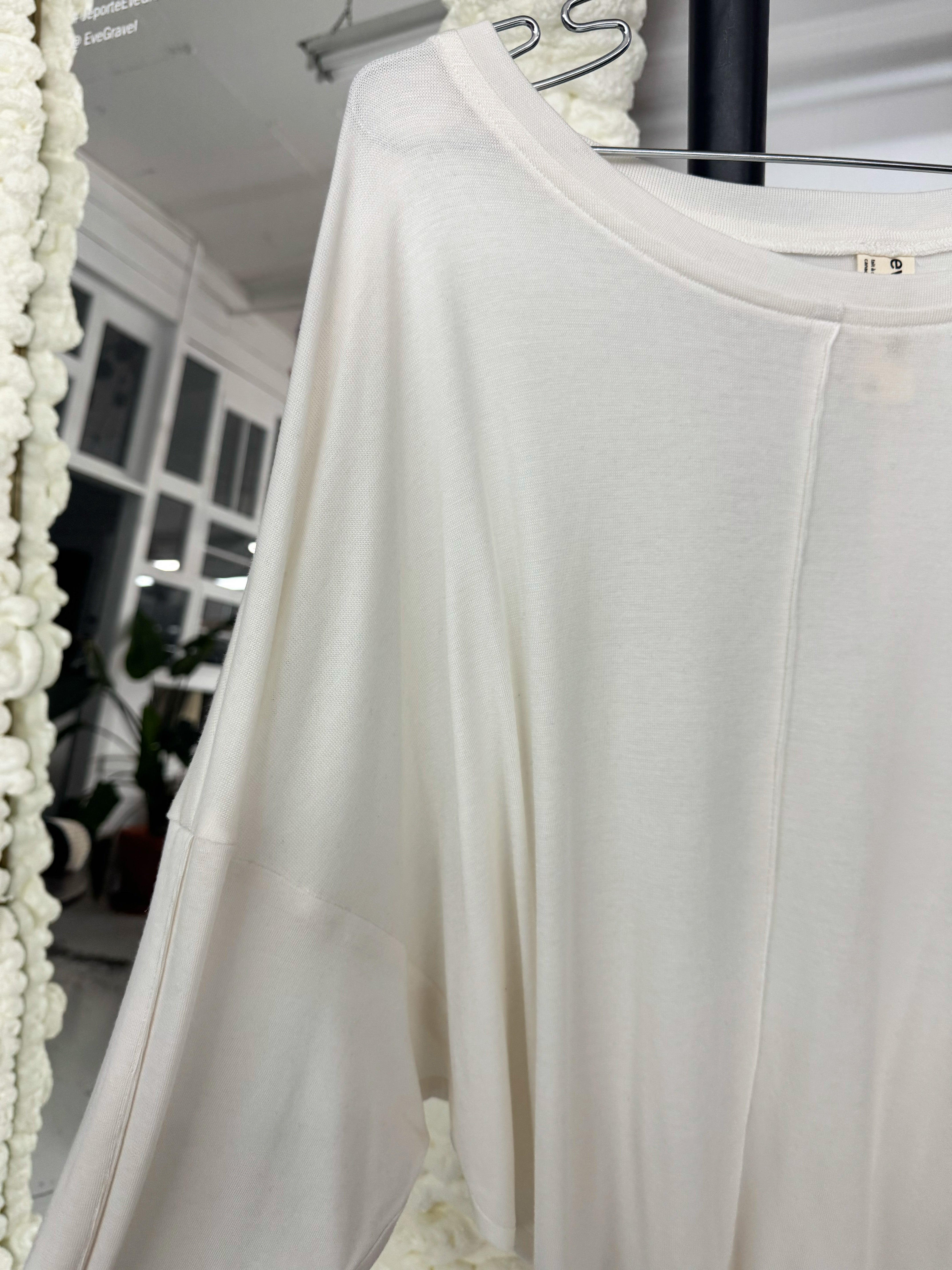Ce top fait partie de notre collection "basics" avec un col rond des manches longues et une coupe légèrement loose pour un confort optimal. Ses détails de nervure au centre devant et sur le dessus des manches ajoutent une touche subtile et raffinée. Confectionné dans un mélange de laine et de lyocell le tissu est d'une douceur incomparable alliant confort et qualité exceptionnelle. Le tout dans un tissu Pealess assurant une durabilité inégalée.