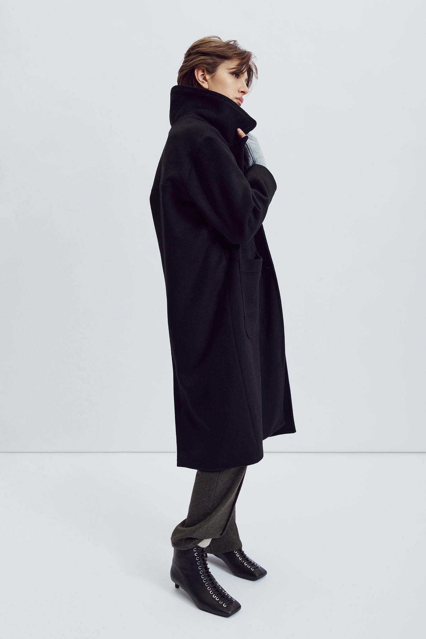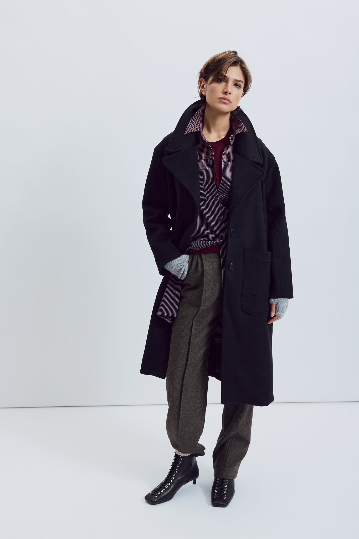 The Eve Gravel coat is a timeless and iconic piece for the season. With its two patch pockets at the front, delicate topstitching, and oversized cut, it perfectly combines elegance and comfort. Lined with a sumptuous Kasha fabric, it also features a back vent for optimal ease of movement. This style is ideal for wearing over a shirt this autumn and perfect for layering over a chunky sweater on cooler days.