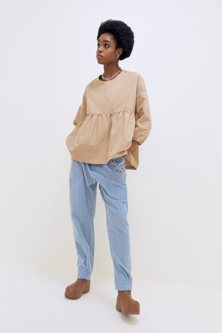 It features ruching at the front to give a flattering volume effect. Fairly long cut, it can be combined with THÉODORE pants in a complementary color.
