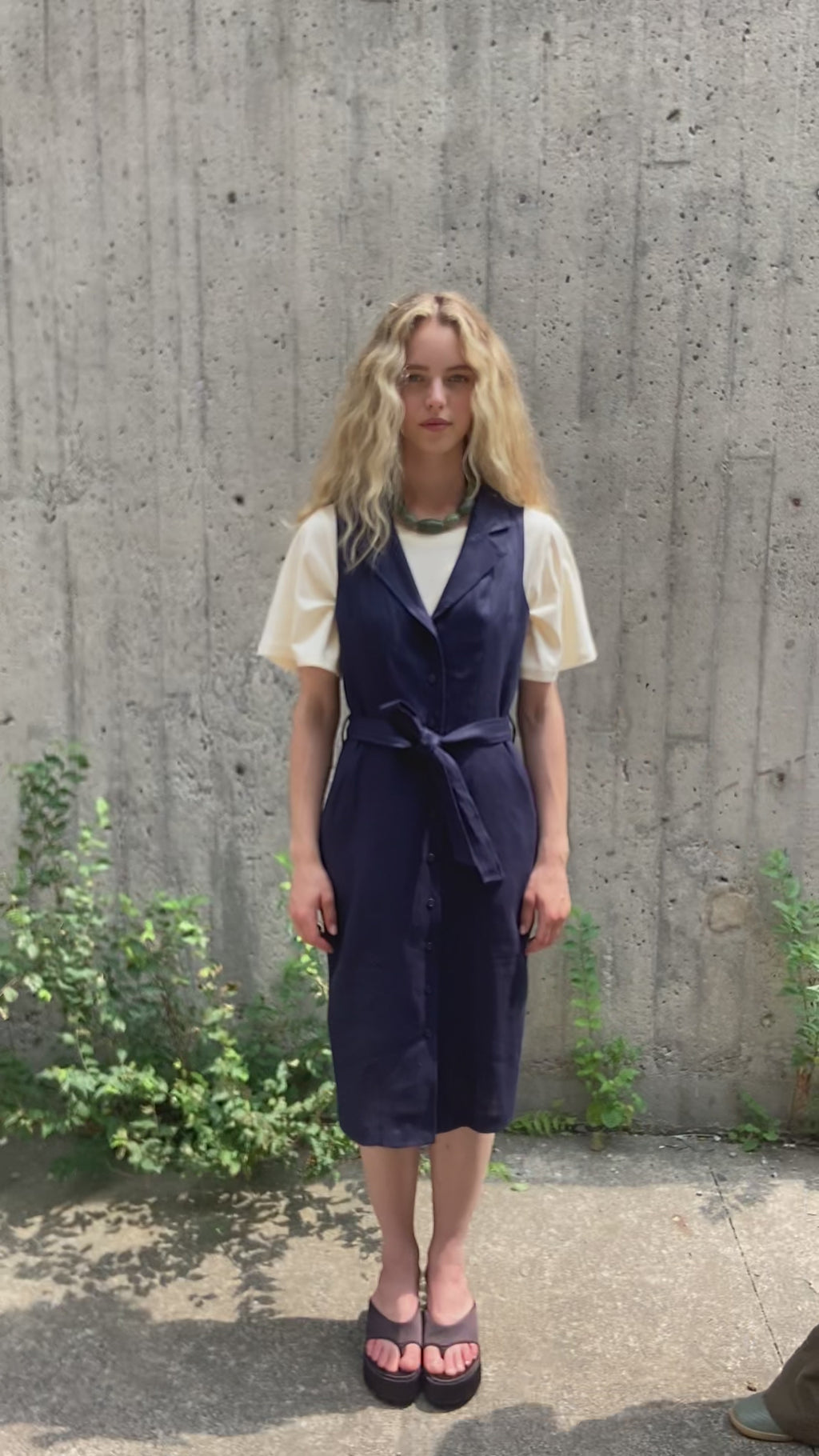 This is the perfect dress for those who want to be elegant without overdoing it. Its midi length elongates the silhouette while remaining easy to wear. Sleeveless and fitted at the waist, it fastens with buttons and a belt that beautifully accentuates the figure. The shirt collar adds a touch of chic, while the darts in the back and side pockets provide comfort and practicality. Available in four colors, it suits every taste and can be worn both day and night.
